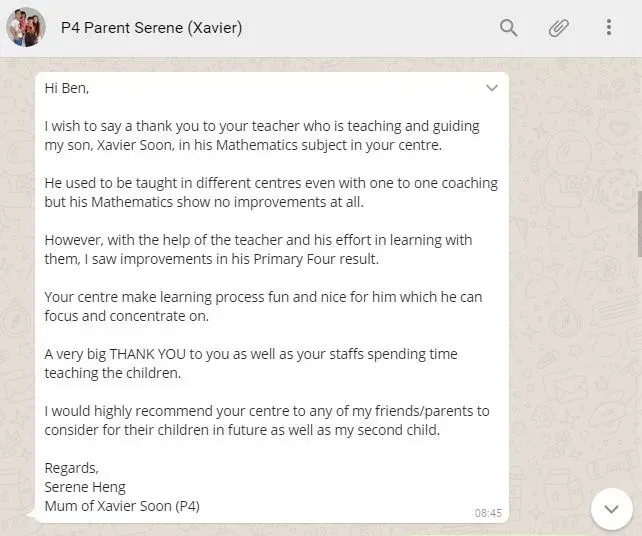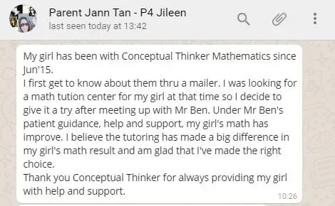 We are a specialised Math tuition centre and we don’t claim to be a jack of all trades. We purely specialise in PSLE Math and we have results to show for!